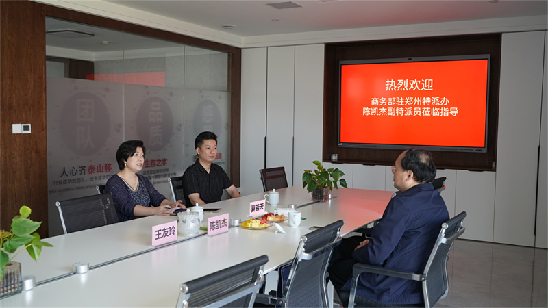 商務(wù)部駐鄭州特派員辦事處副特派員陳凱杰蒞臨天天公司調(diào)研指導(dǎo)